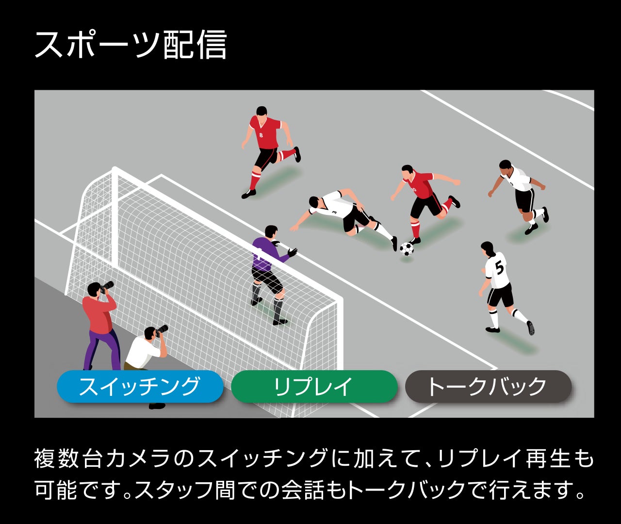 クラウド上でスイッチングを行うので、撮影現場から遠く離れた場所からもスイッチングが可能です。