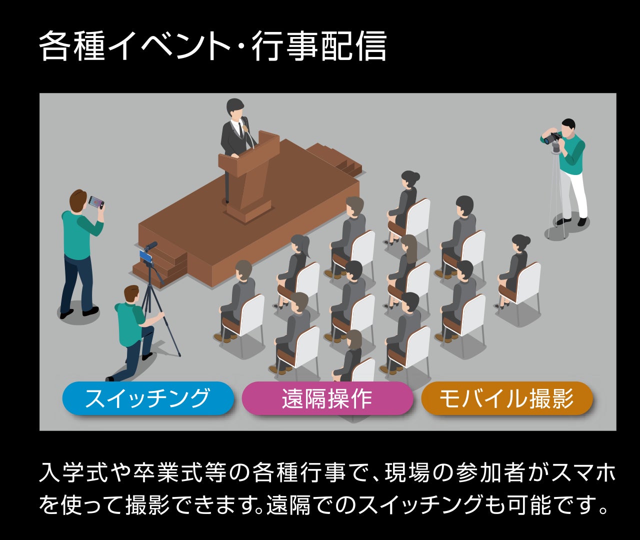 スマホや外部カメラ(LUMIX・NDI等)の遠隔コントロールが可能です。