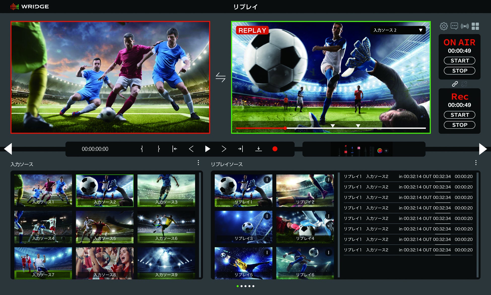 配信中に入力された映像のリプレイ映像を作成・保存しワンクリックで配信することが可能です。