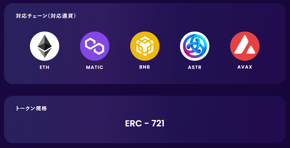 また、NFT のクオリティを担保すべく、審査制を導入いたします。加えて、様々なブロックチェーンゲームやGameFiのプロジェクトニーズをカバーできる5つのメジャーなマルチチェーン(イーサリアム:ETH、ポリゴン:MATIC、BNBチェーン:BNB、アバランチ:AVAX、アスター:ASTR)でNFTの販売が可能です。さらに、パブリックチェーンを活用することにより、海外のブロックチェーンゲーム・GameFi企業との連携も視野に入れております。