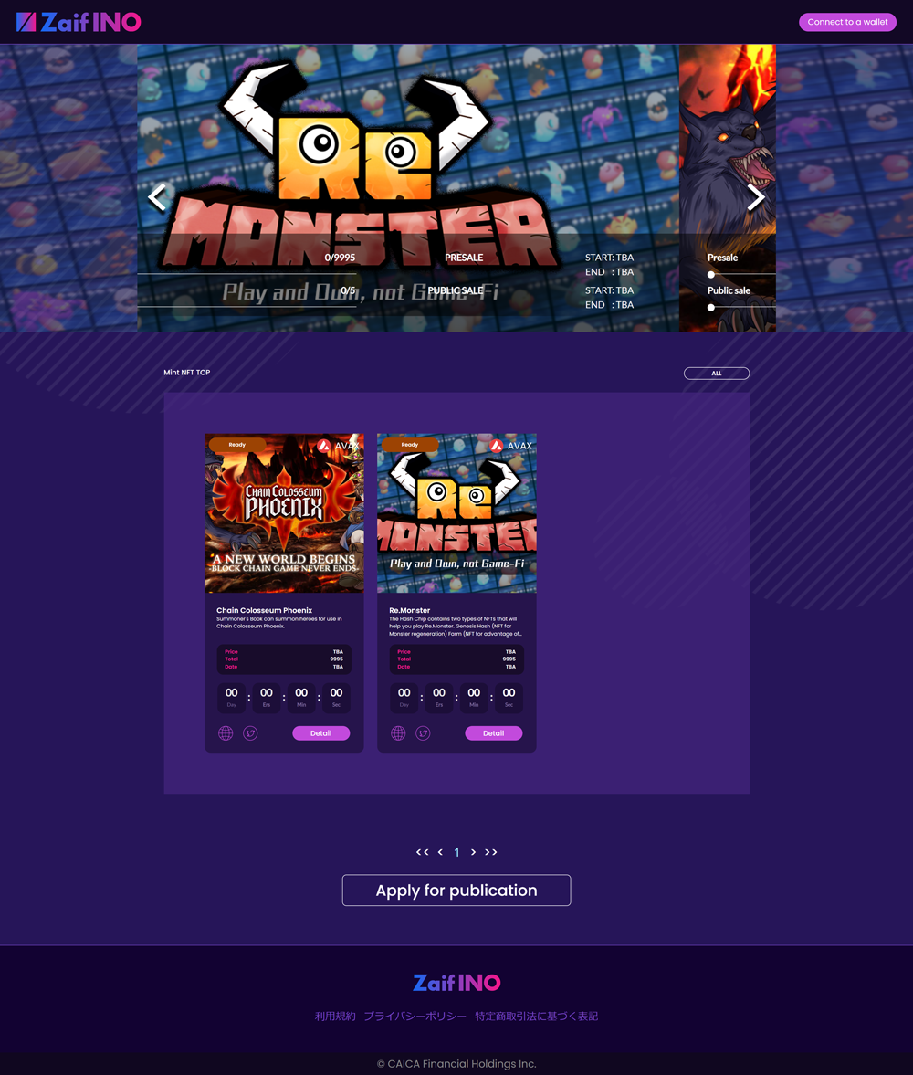 ブロックチェーンゲーム専門NFTローンチパッド(1次販売)「Zaif INO」における第1回NFTの販売を11月21日より開始することを決定いたしました。これに先立ち本日「Zaif INO」を公開しましたのでお知らせいたします。