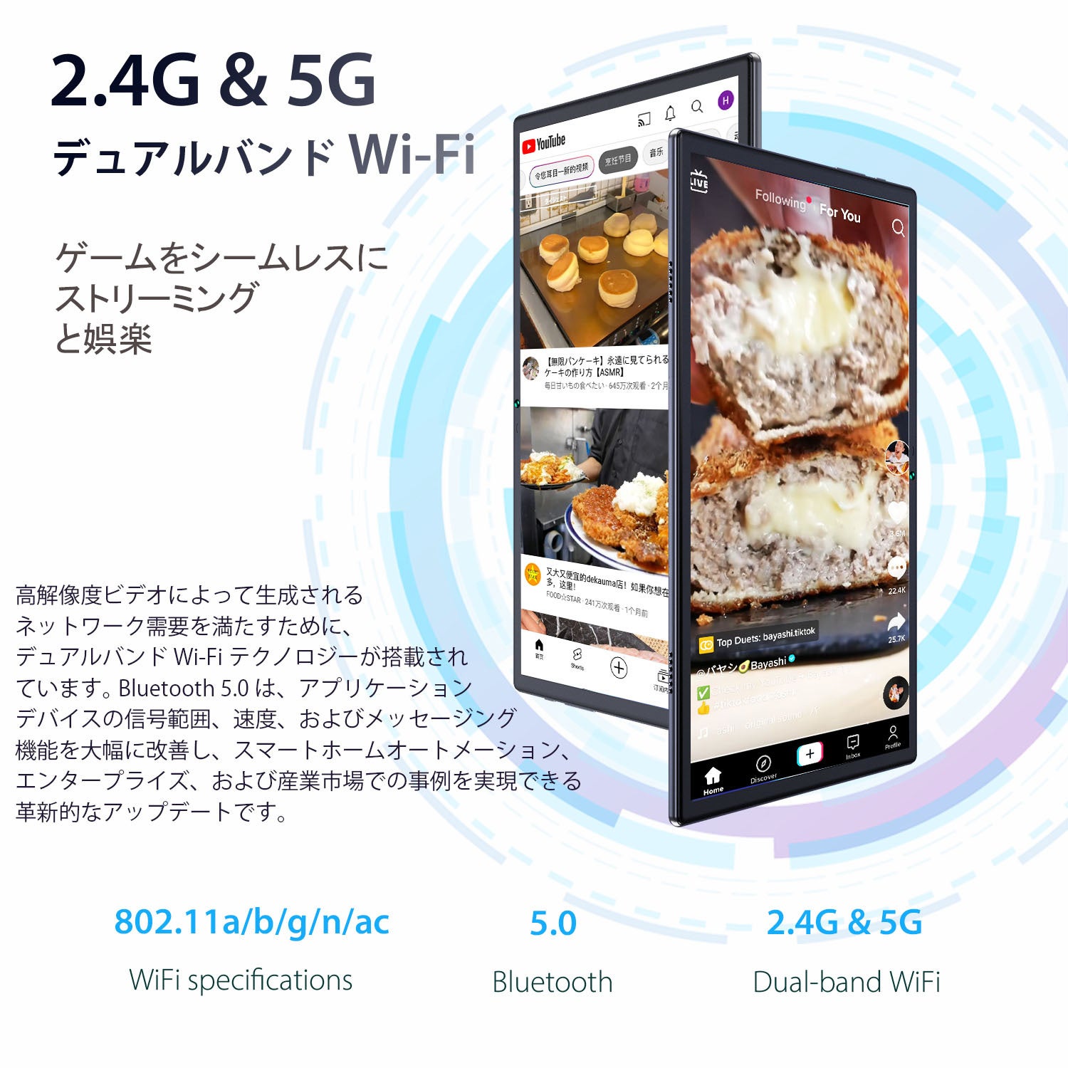 | WiFi、Bluetooth | Wi-Fi(2.4GHz/5.0GHz)802.11a/b/g/n/ac Bluetooth 5.0 |