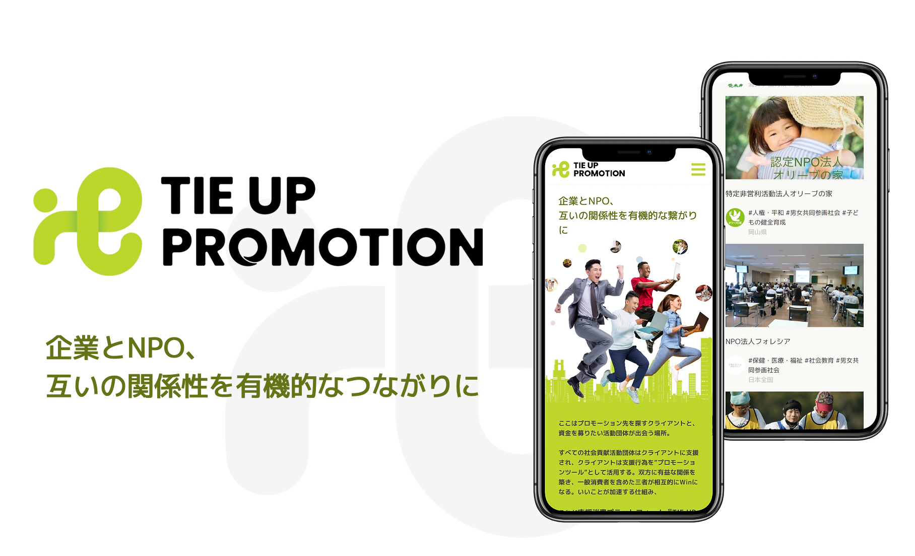 TIE UP PROMOTIONは、「SDGsへの貢献を検討している中小企業」と「活動資金を募るNPO」がタイアップを目的にマッチングを行うプラットフォームです。