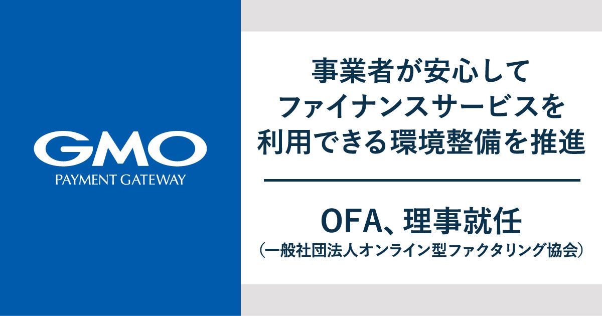 GMO-PGでは、2018年5月より事業者の成長をファイナンス面よりご支援するべく、売掛債権の買い取りにより売掛金を早期資金化する「GMO BtoB早払い(ファクタリング)」を提供しており、この度のOFA理事就任をはじめ、ファクタリング市場の健全な発展に貢献してまいります。