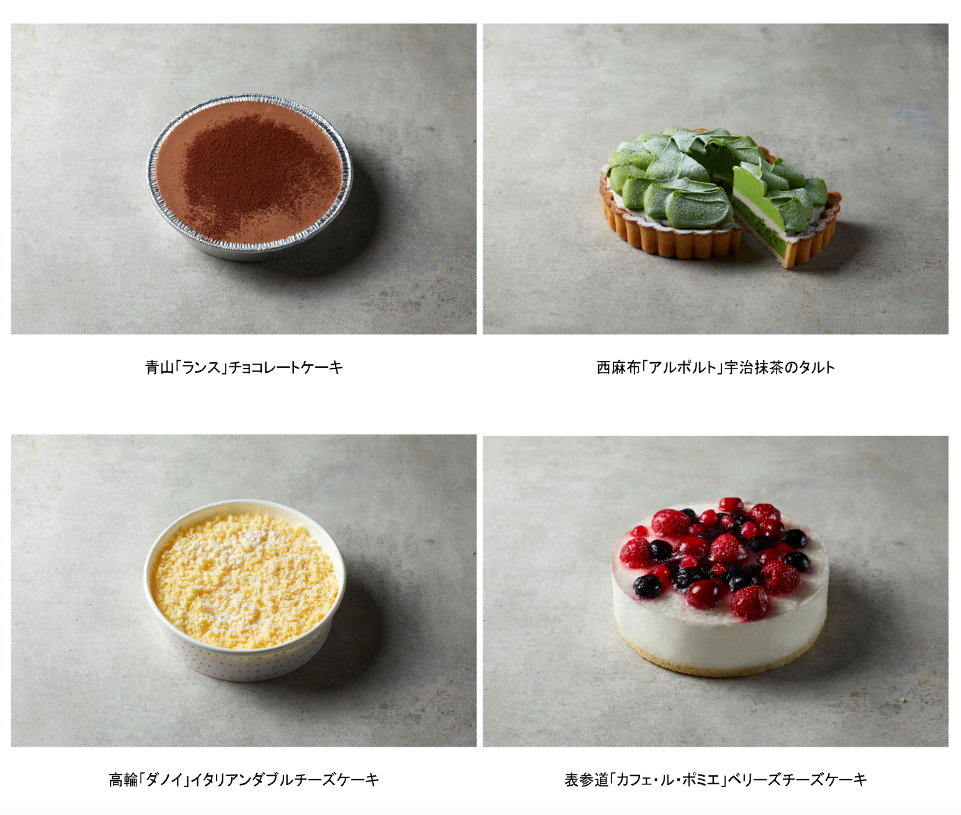 イタリア料理界の重鎮として一世を風靡しながら現在でも第一線で活躍するアルポルトの片岡護シェフが監修。半熟チーズケーキを抹茶風味のタルトに仕上げ、餡入りクリームと抹茶クリームをトッピングした和テイストなスイーツです。
