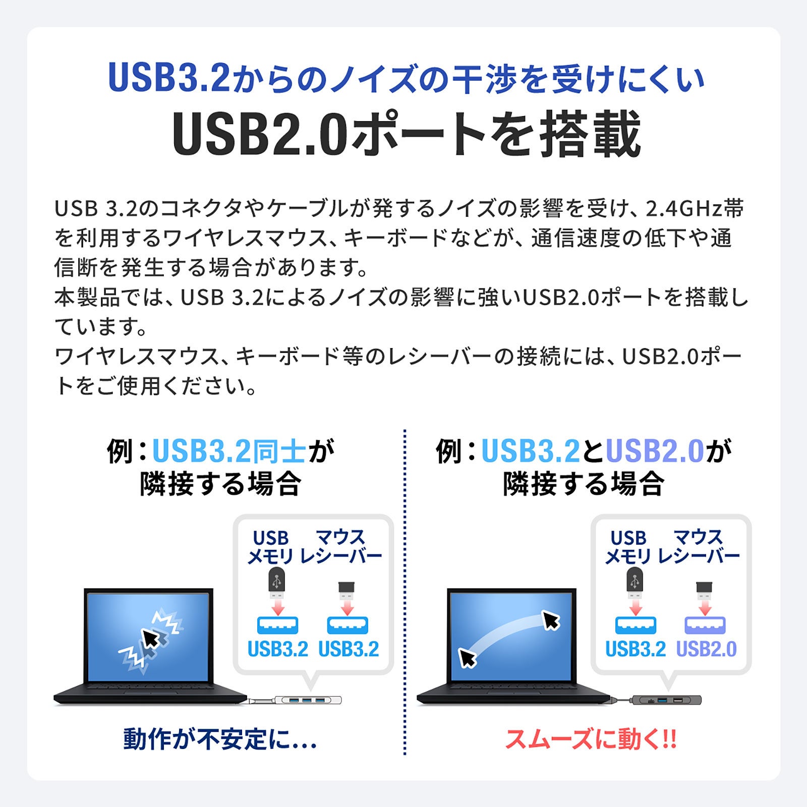USB3.1ポートからのノイズを受けにくい、USB2.0ポートを搭載しています。