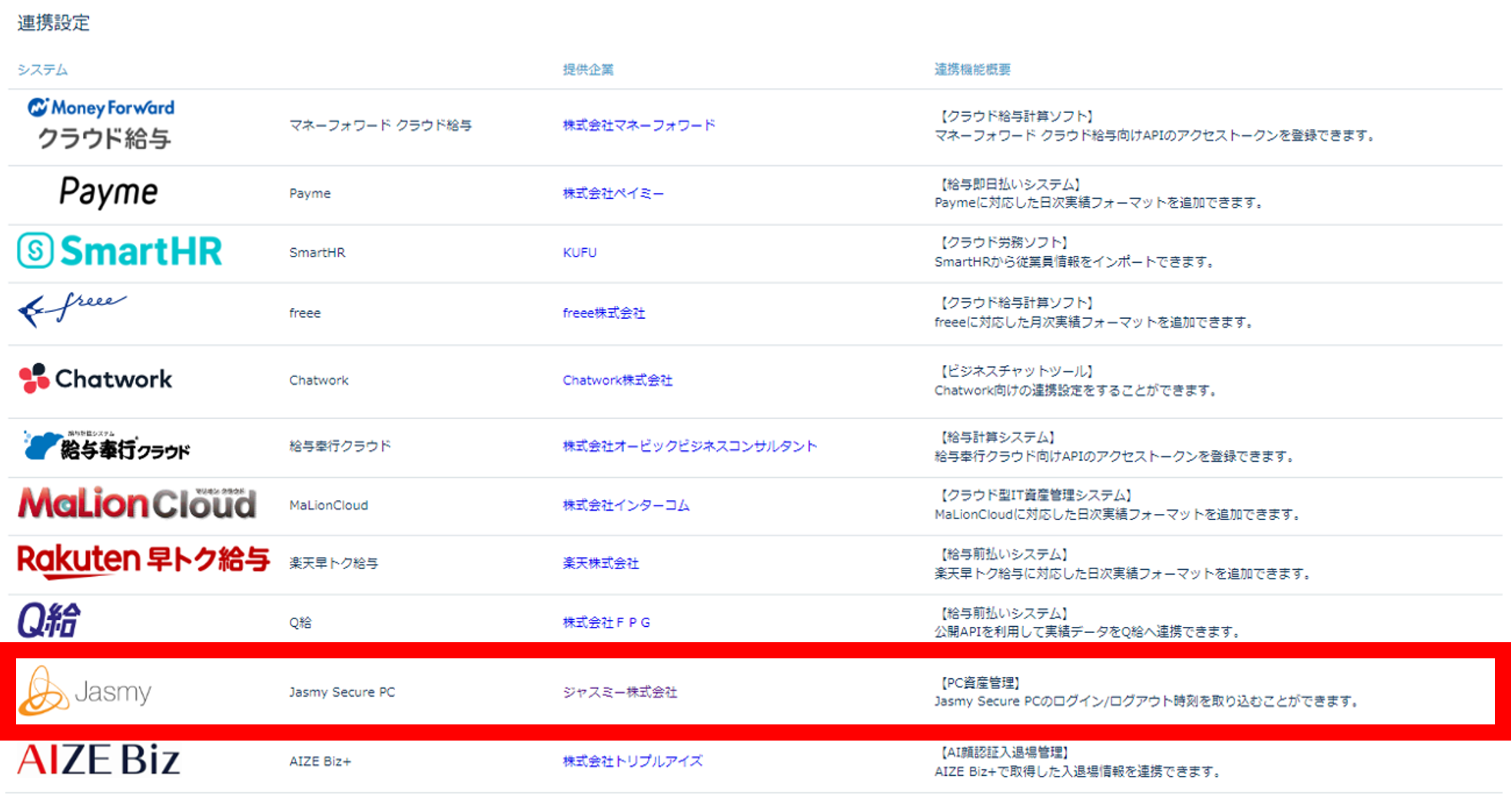 この連携により、「Jasmy Secure PC」をご利用中の企業は「AKASHI」側での出退勤打刻が不要となり、従業員の打刻漏れ防止・サービス残業の抑制に寄与し、勤怠管理関連業務の時間短縮につなげることができます。