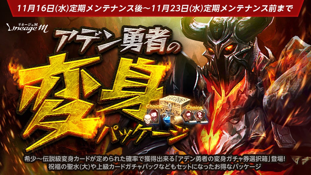 PCオンラインRPG「リネージュ」のモバイル版タイトル『Lineage M(以下、リネージュM)』のサービス、運営をしているエヌ・シー・ジャパン株式会社(東京都港区、代表取締役:金 澤憲(キム テクホン) 以下、エヌシージャパン)は、2022年11月15日(火)に、次期大型アップデートに関する特設サイトの公開、特設サイトシェアキャンペーンの開催、2022年11月16日(水)に、事前キャラクター作成キャンペーンの開始、および各種パッケージの登場をお知らせします。