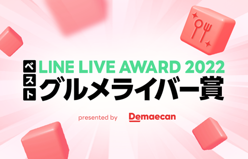 「LINE LIVE AWARD」は、1年を通して活躍したライブ配信者を表彰する年間アワードとして、2018年より開始したライバーの祭典です。このたび「出前館」と「LINE LIVE」では、年間No.1ライバーを決める「LINE LIVE AWARD 2022」において、Demaecanプレゼンツ ベストグルメライバー賞決定戦を2022年11月16日(水)~22日(火)で開催することとなりました。