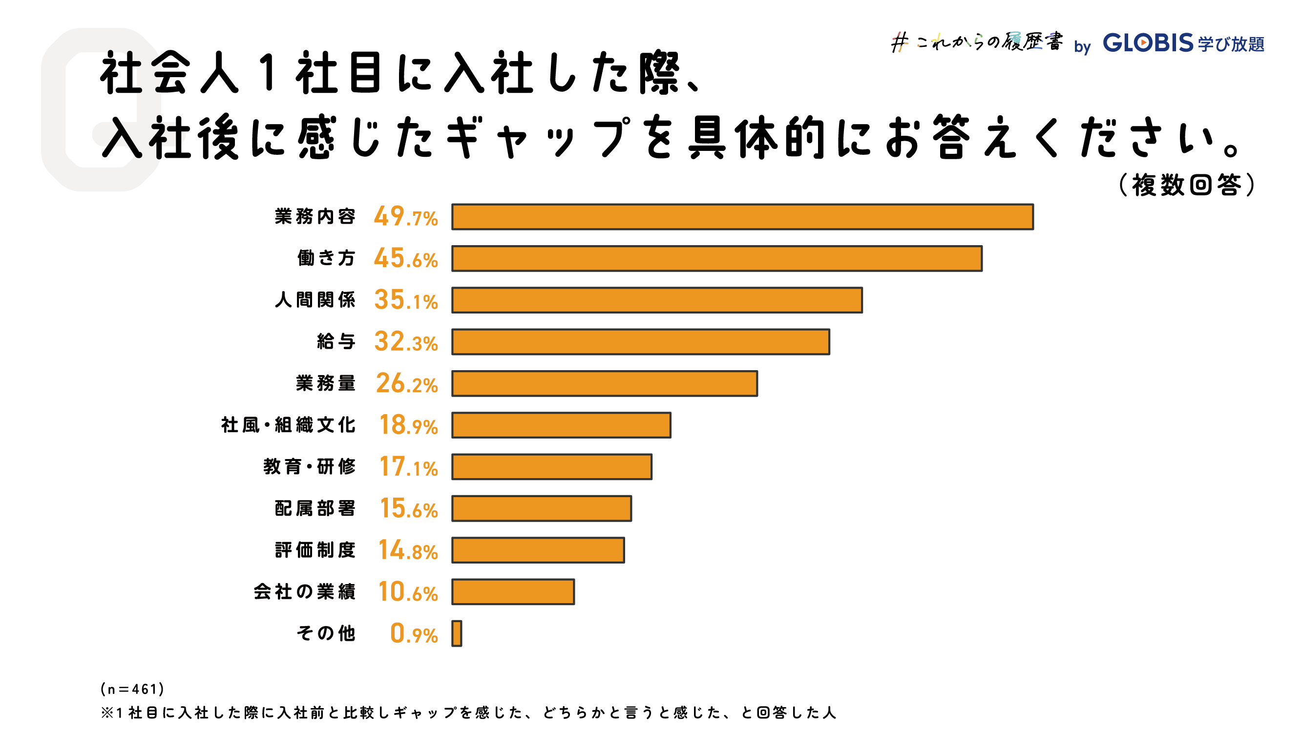 【トピック①】若手社会人の約6割が、新卒入社後ギャップを感じている。