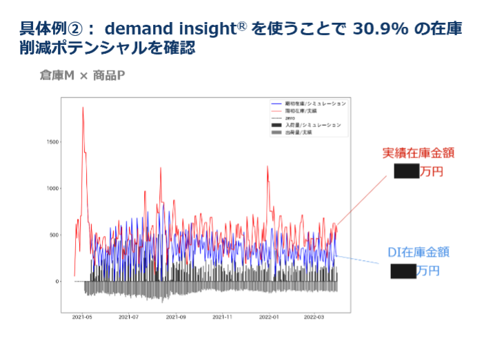 | AI需要予測×安全在庫分析 | ・汎用需要予測AIモデルで販売計画を作成し、既存のものと精度比較をしたい ・需要予測で得られた販売計画※を活用した在庫最適化の効果が知りたい |