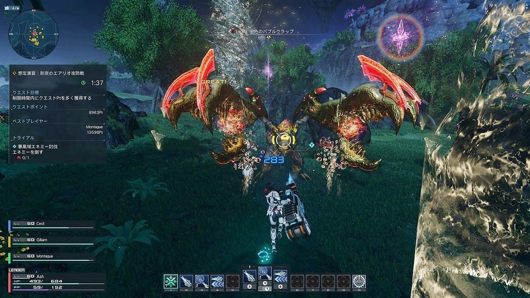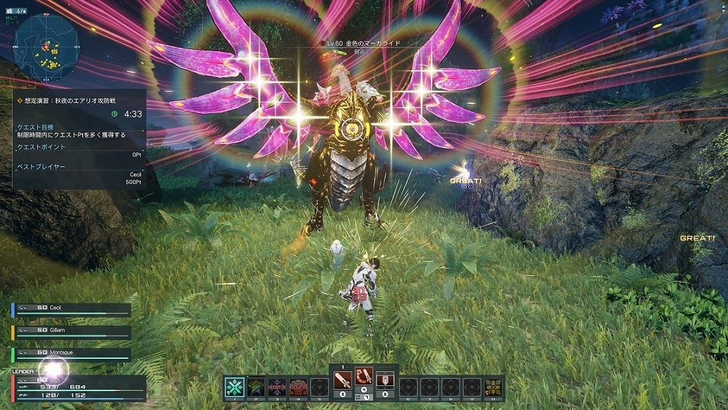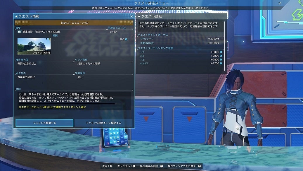 期間限定イベント「オータム’22」後半に合わせ、期間限定クエスト「想定演習:秋夜のエアリオ攻防戦」が登場します。次々と出現するエネミーを倒し、最後に待ち受けるボスエネミーを倒す進行型のクエストで、クエストトリガーは必要なく、各リージョンのクエストカウンターから何度でも受注可能です。