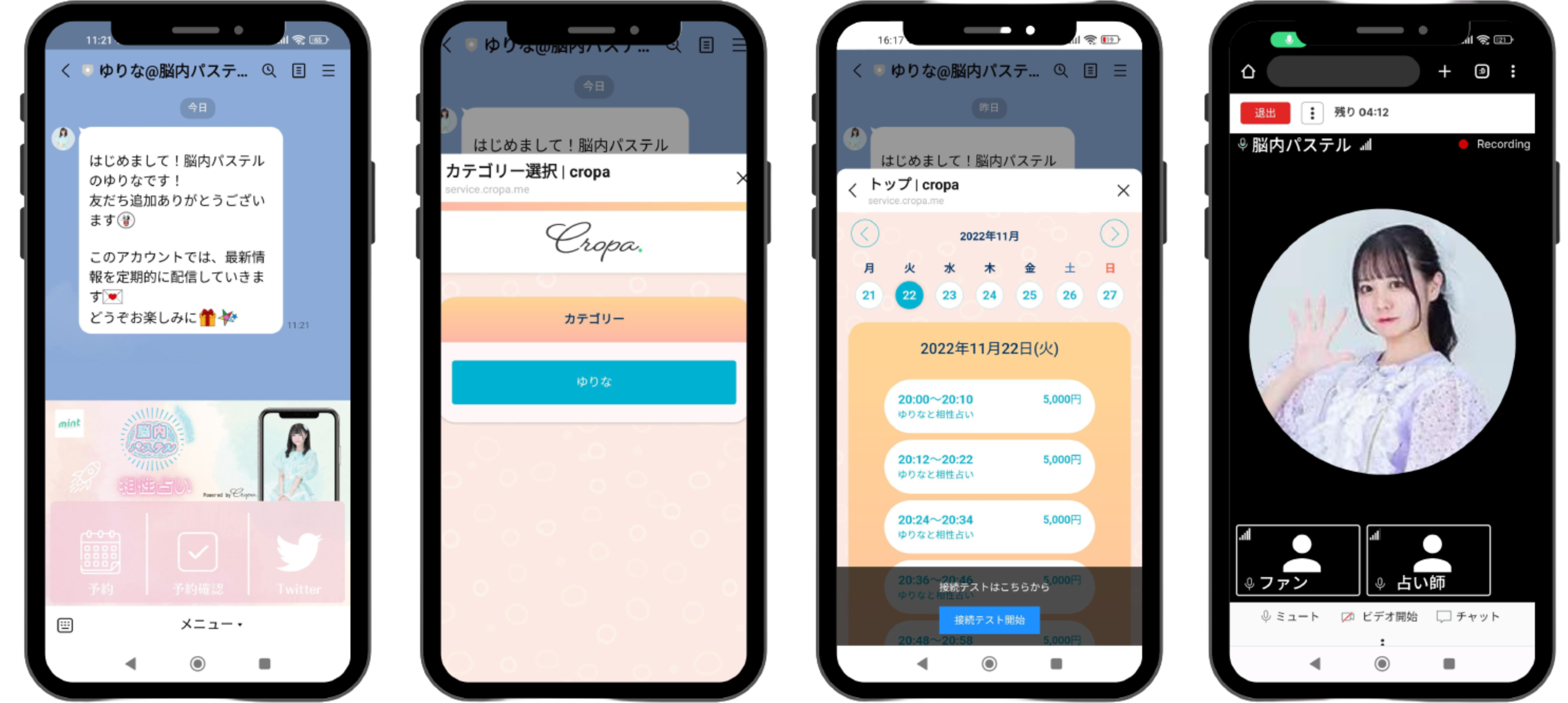 脳内パステルのゆりなさん、みさきさんの2人がそれぞれ10枠限定で11月22日(火)20時~22時に実施します。予約開始の11月16日(水)18時より公式LINEよりお申し込みいただくことができます。公式LINEは、以下のURLより追加してください。
