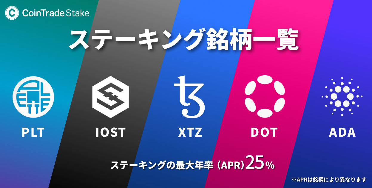 これにより、「CoinTradeStake」(コイントレードステーク)では5種類の暗号資産のステーキングサービスを提供することとなります。