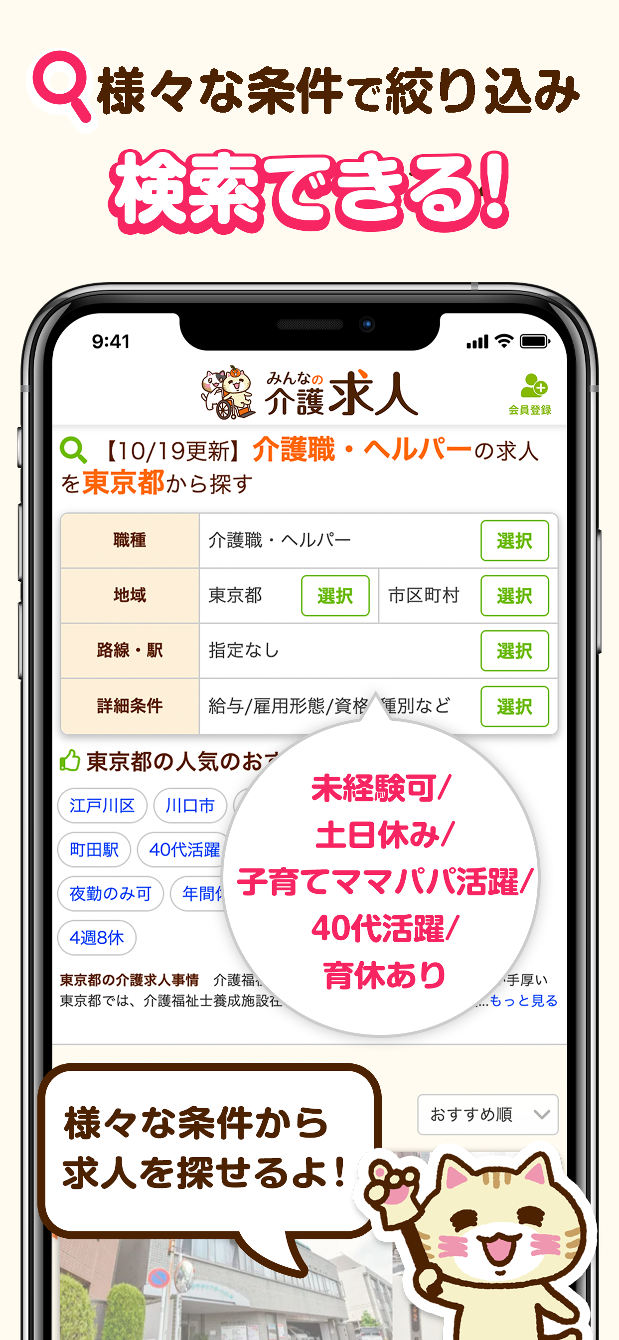 ・職種・地域・給与や雇用形態など様々な条件から求人を検索できます!