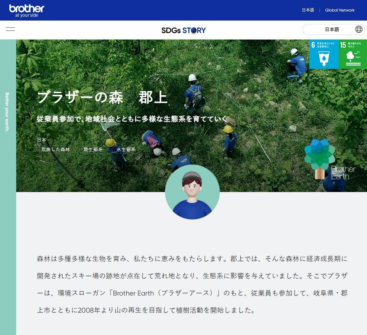 ブラザーグループによる、SDGsへの多様な貢献活動を紹介するスペシャルサイト。ブラザーグループの活動が「事業での貢献」「環境の保全」「社会を支援」「社会的な責任」といった四つのカテゴリーに分けて紹介されている。また、各活動内容についても、SDGsとのつながりを「ストーリー」として具体的にわかりやすく紹介されている他、ブラザーグループの環境保全活動に気軽に参加できるクリック募金や、SDGsを簡単に学べる独自の解説コンテンツが用意され、サイトを見に来た人が活動への親しみや共感を持ち、SDGsを自分事として感じて一緒に活動できるきっかけとなるようなサイトとなっている。