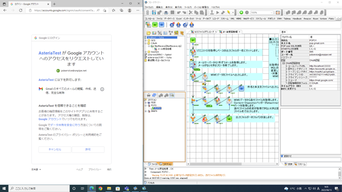 OAuth認証機能を利用してGmailとの自動連携を行う様子