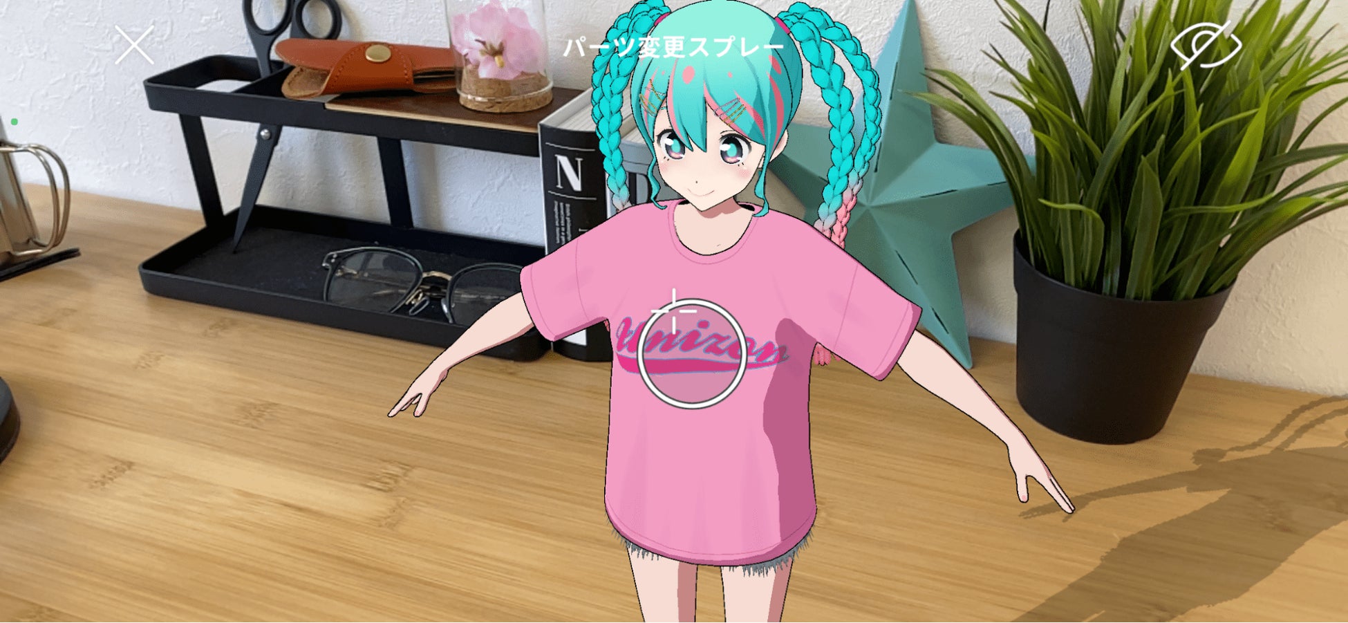 HoloModels(ホロモデル)のデジタルフィギュアは、デジタルスプレーを本体に吹きかけることで、さまざまな機能を使用することが可能です。画面上の「十」がカーソルとなるため、操作や選択の際は対象物にカーソルを合わせていただきますと、操作いただけます。