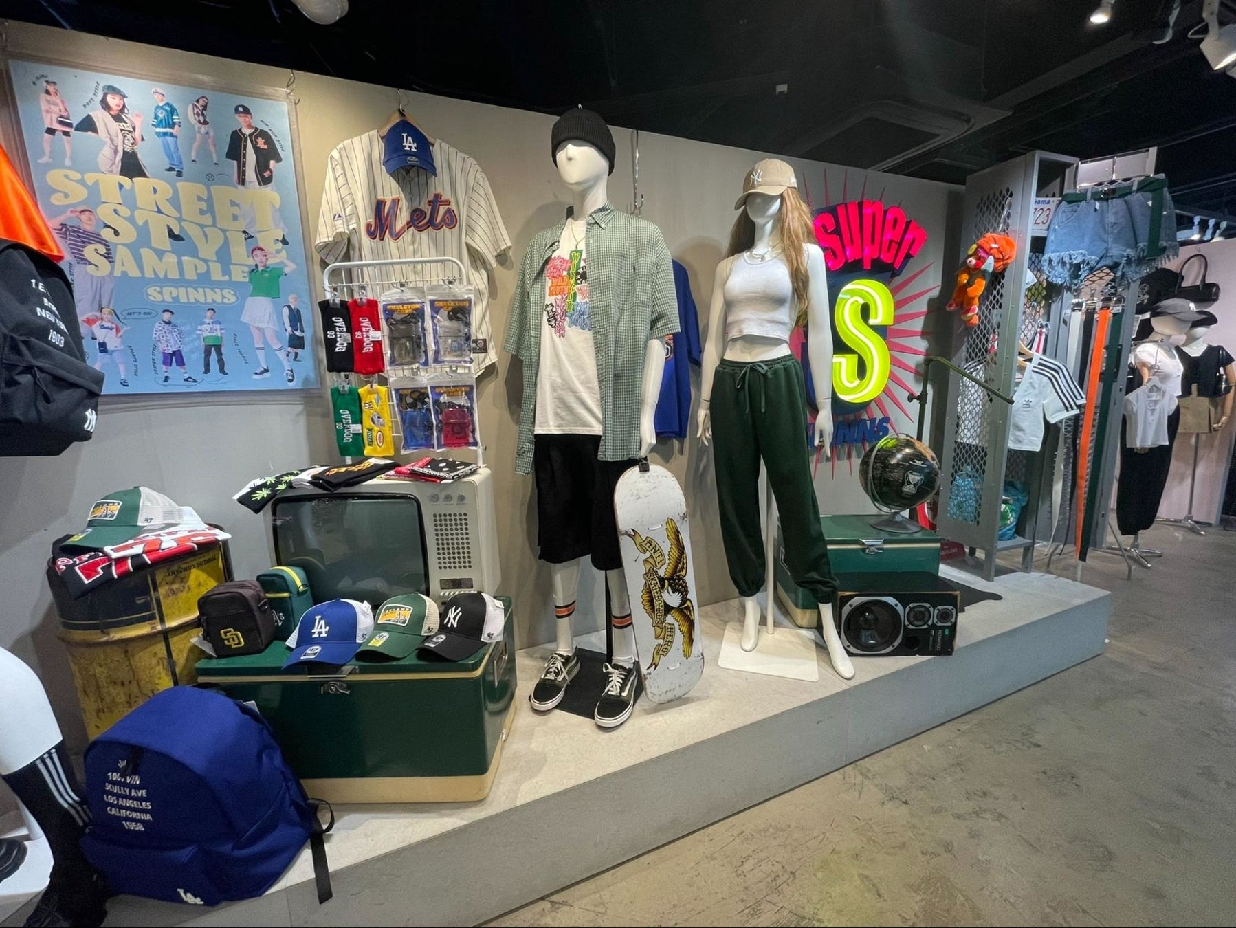「ATTITUDE MAKES STYLE!」(主張がスタイルをつくる!)をコンセプトに常に時代のトレンドに沿いながらも、自分達の主張を大切にした“スタイル提案”をし続ける”スタイルマーケット”。「NEW&VINTAGE STYLE MARKET」という言葉の通り、独自のスタイルを貫いたオリジナル商品に加え、新商品から中古商品までワールドワイドなセレクトによる幅広い商品を取り扱っています。その品揃えはファッションだけでなく、音楽、アート、など様々な”ユースカルチャー”をスピンズ風にミックスし「ライフスタイル」として提案し続ける。まさにファッション、音楽、アート、人などの様々なユースカルチャーがスピンする(渦巻く)お店である。