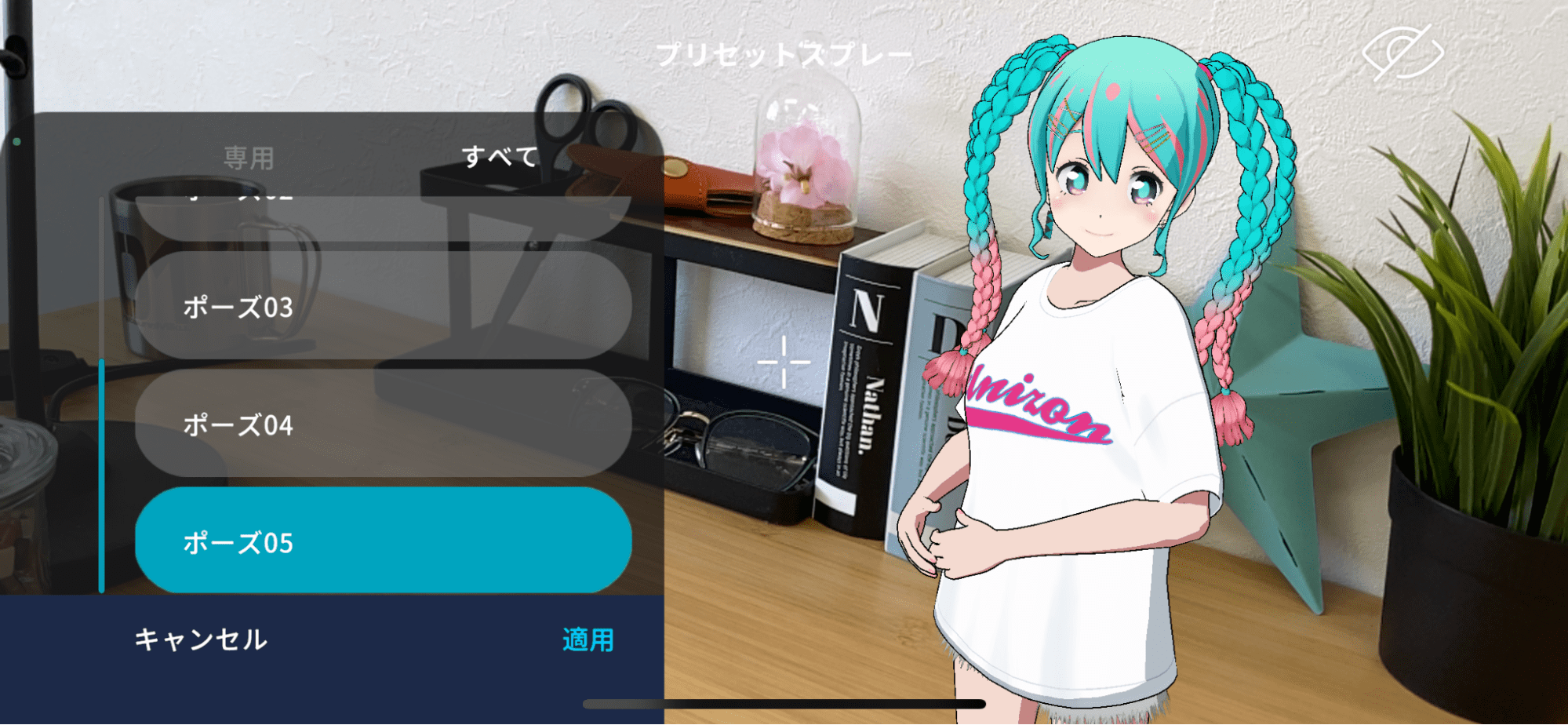 実物大にしたり、好きなポーズにしたり。デジタルならではの機能も充実!スマホひとつで持ち運びができるから、ご自宅で作成したポーズをお出かけ先で表示して、好きなキャラクターとお出かけできます。