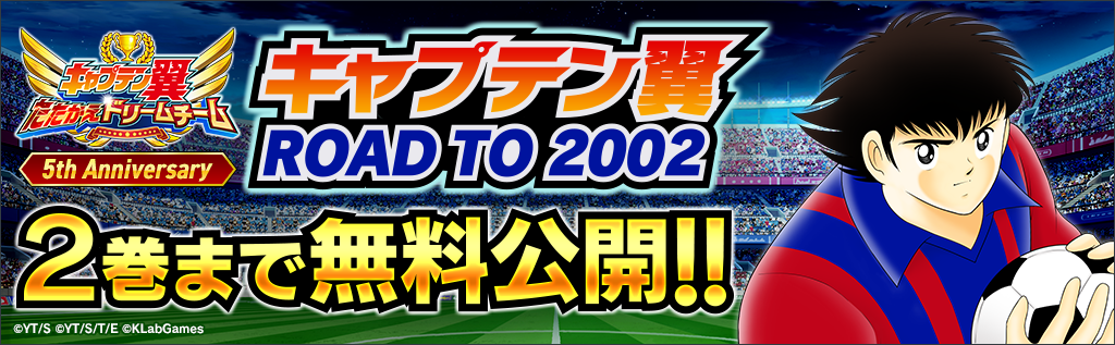 - 5周年記念!漫画『キャプテン翼 ROAD TO 2002』2巻無料キャンペーン!