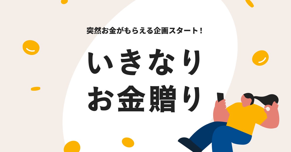 リニューアルを記念し、ユーザーの皆さまへ「いきなりお金贈り」を実施します。