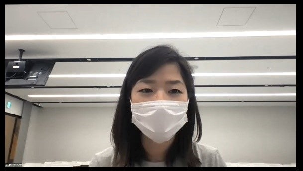 その後、オンライン上で1グループ4名ずつ、全19グループに分かれ、Adobe Expressで制作したデザイン作品を発表しあったり、アプリの使い方を教えあったりして交流を図りました。