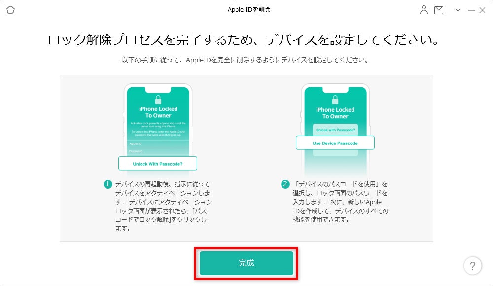 ※注意:何回もApple IDのロック解除が失敗していた場合は、Apple IDのロック状態がそのまま維持しています。この状況では翌日に改めてお試してください。
