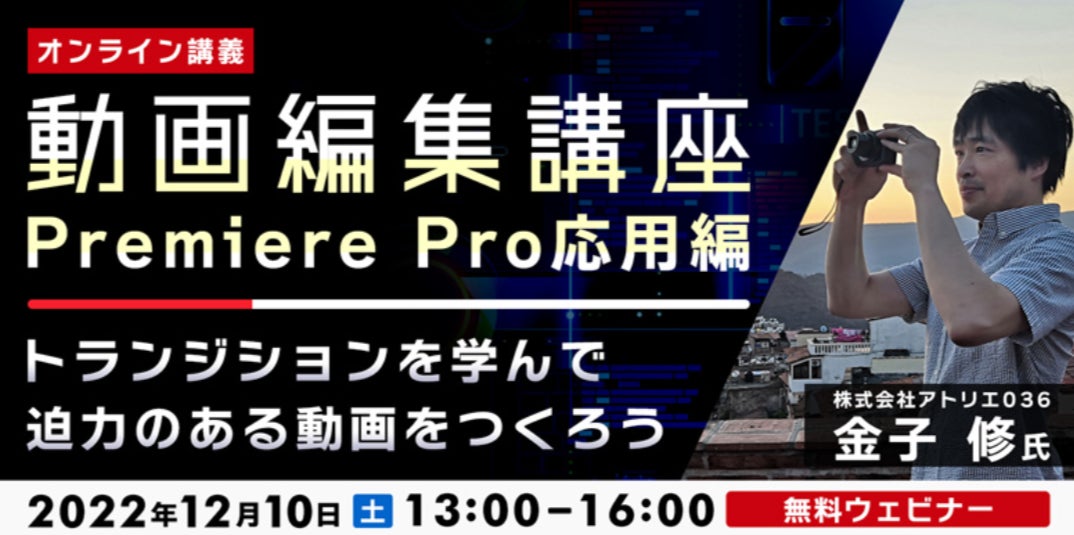 - オンライン講義! 動画編集講座 Premiere Pro応用編 トランジションを学んで迫力のある動画をつくろう