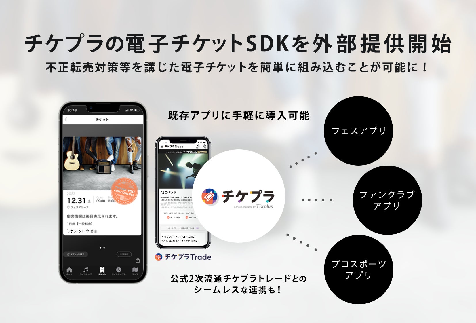 これまでもチケプラの電子チケットサービスは、プロスポーツ球団等の外部アプリでもご利用いただいておりましたが、OEMによる機能提供としておりました。この度提供を開始した「チケプラSDK」であれば、音楽フェスアプリやアーティストのファンクラブ専用アプリ、プロスポーツ専用アプリなどの既存アプリに、手軽に簡単に組み込むことができ、電子チケットの発券ができる機能はもちろん、同行者にチケットを分配する機能、チケットIDに紐づいたユーザーへのコミュニケーション機能、アプリに合わせたチケットデザインなどが可能となります。また、不正転売対策を講じることもできます。
