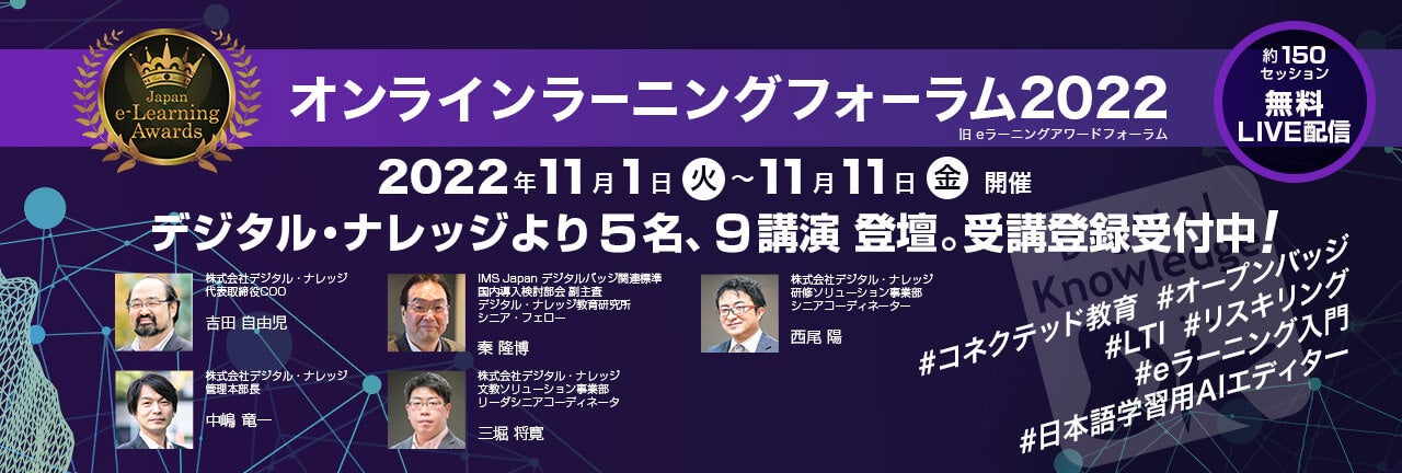 毎年ご好評をいただいております、オンラインラーニングのキーパーソンによるサミットです。今年のテーマはリスキリング。