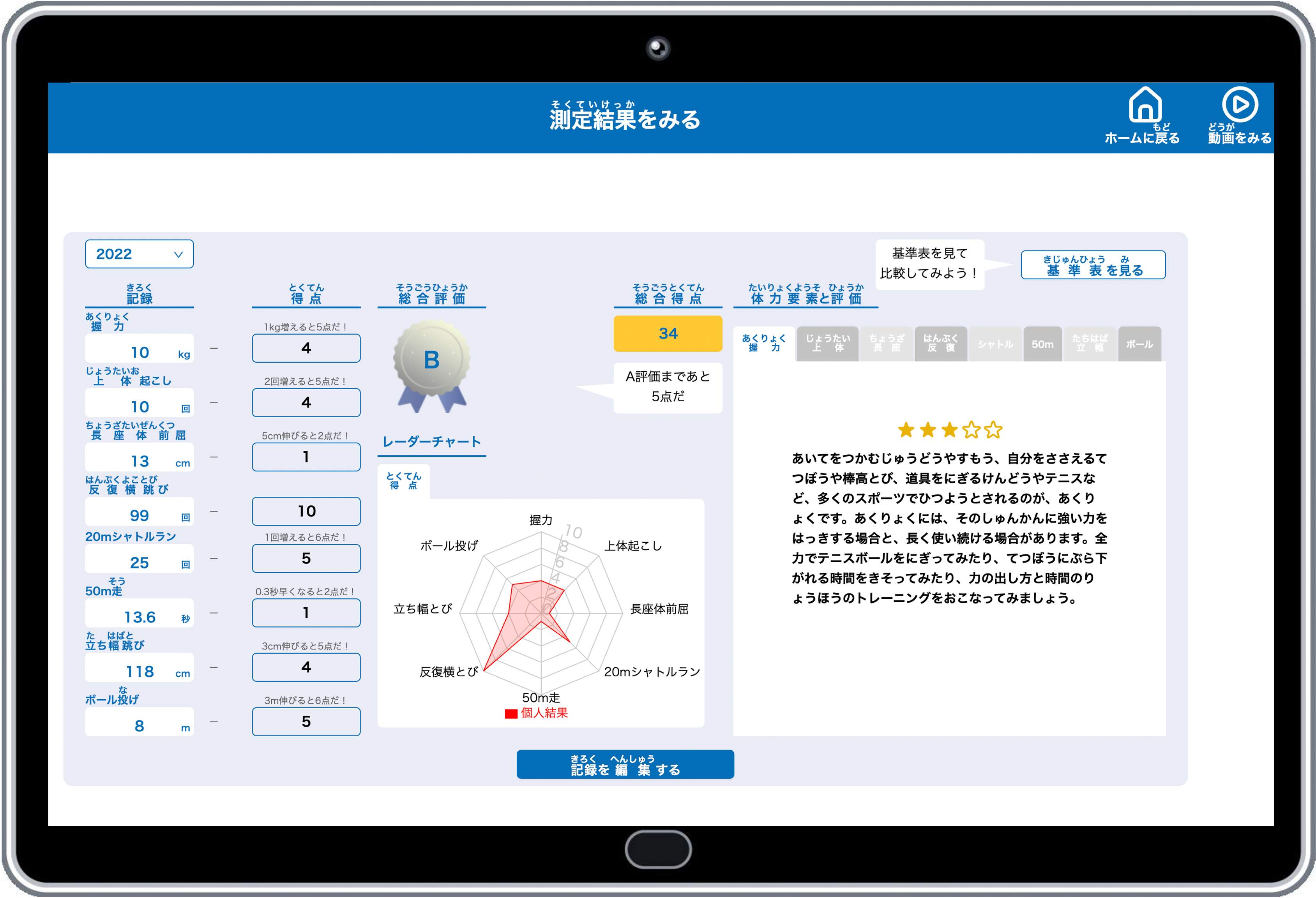 種目の説明や実施要項を動画で詳しく説明し、測定をスムーズに行うことができます。