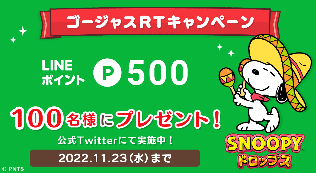 公式Twitter『スヌーピードロップス』をフォローしてリツイートするだけなので、皆さん奮ってご参加ください!