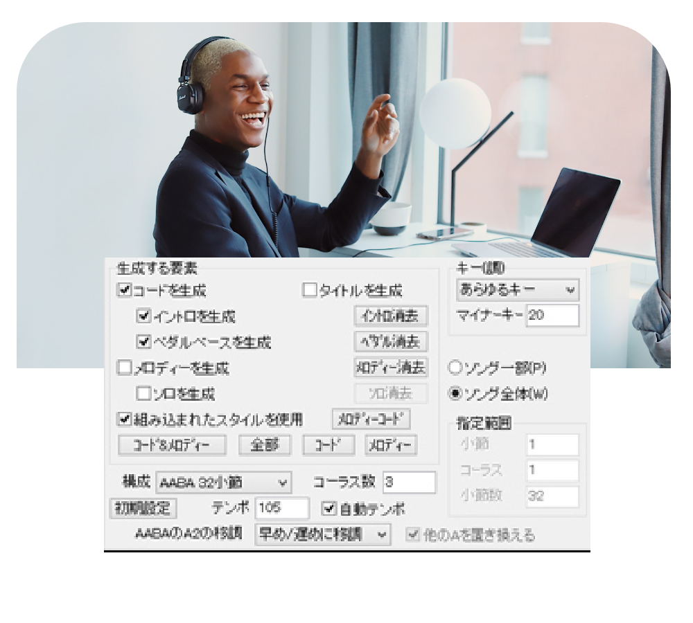 自分のオリジナル楽曲や映像のBGMを自動作成