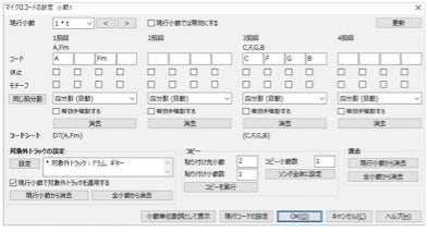 たが、新バージョンでは各拍に4個(各小節に16個)まで入力できるようになりました。各拍に入力された複数のコードをマイクロコードと呼びます。これは特にスローなソングで便利な機能です。オプションで、マイクロコードを特定トラックにだけ弾かせ、他のトラックは普通のコードを弾かせることもできます。