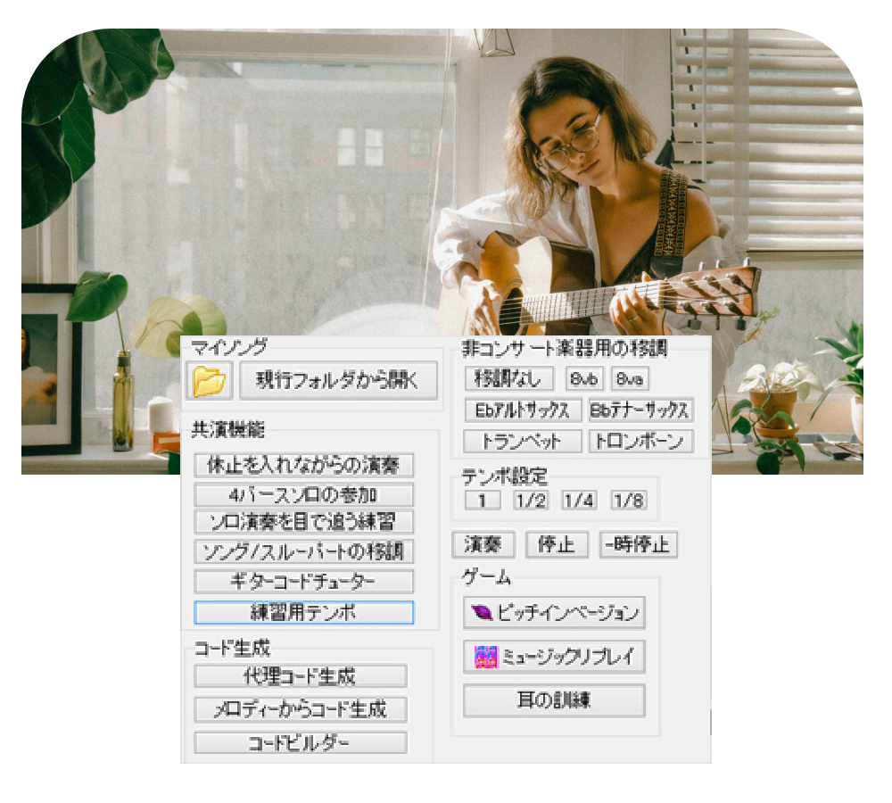 ・各種楽器練習の為の伴奏作成と練習用テンポ機能