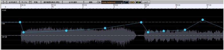 ボリュームオートメーションモードが加わりました。このモードでは、オーディオデータに結節点を加えて、フェードやクレッシェンドしながらボリュームをコントロールすることができます。