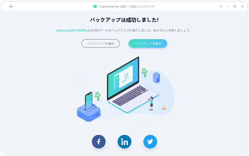 Google ドライブへのLINEバックアップがうまくいかない場合には、専門的なLINEバックアップソフトであるiCareFone for LINEを利用して、Google ドライブを使わずにPCにLINEのトーク履歴のバックアップを無料で作成することも可能です。