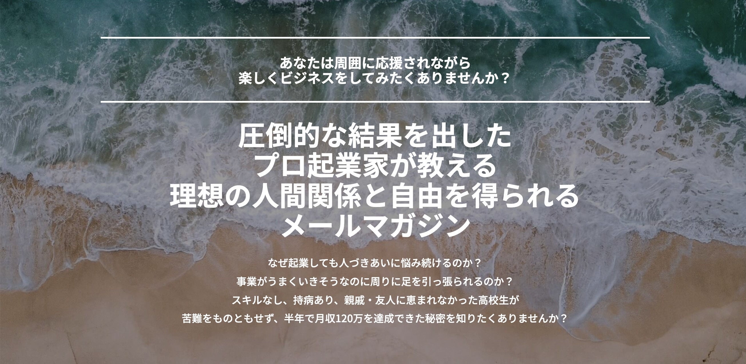 - 「圧倒的な結果を出したプロ起業家が教える 理想の人間関係と自由を得られるメールマガジン」について