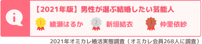 昨年の結果では「優しそう」「楽しそう」が多く、男性が選ぶ恋人にしたい芸能人ランキングの結果と近い理由が大半を占めていましたので、大きな変化でした。