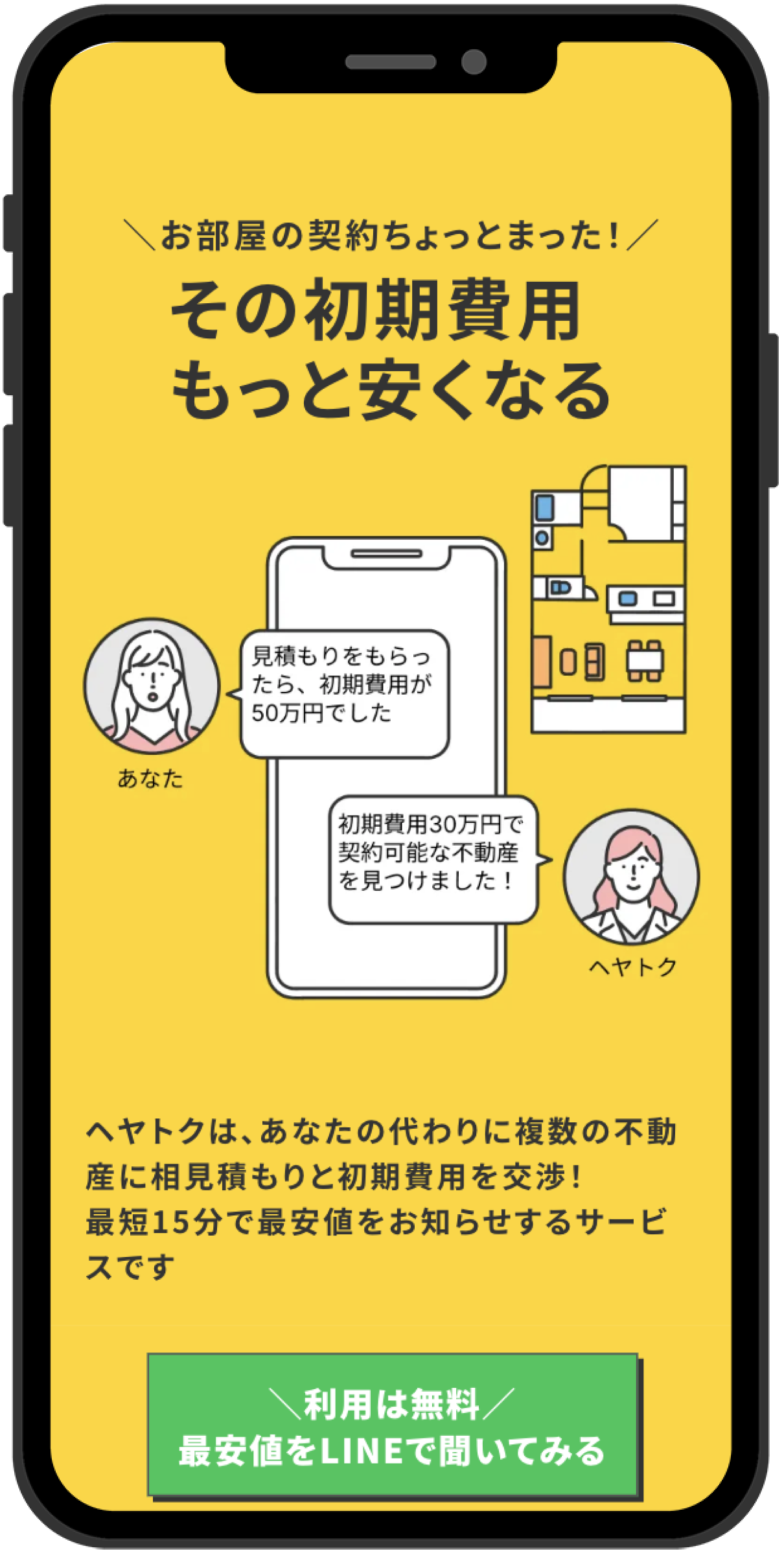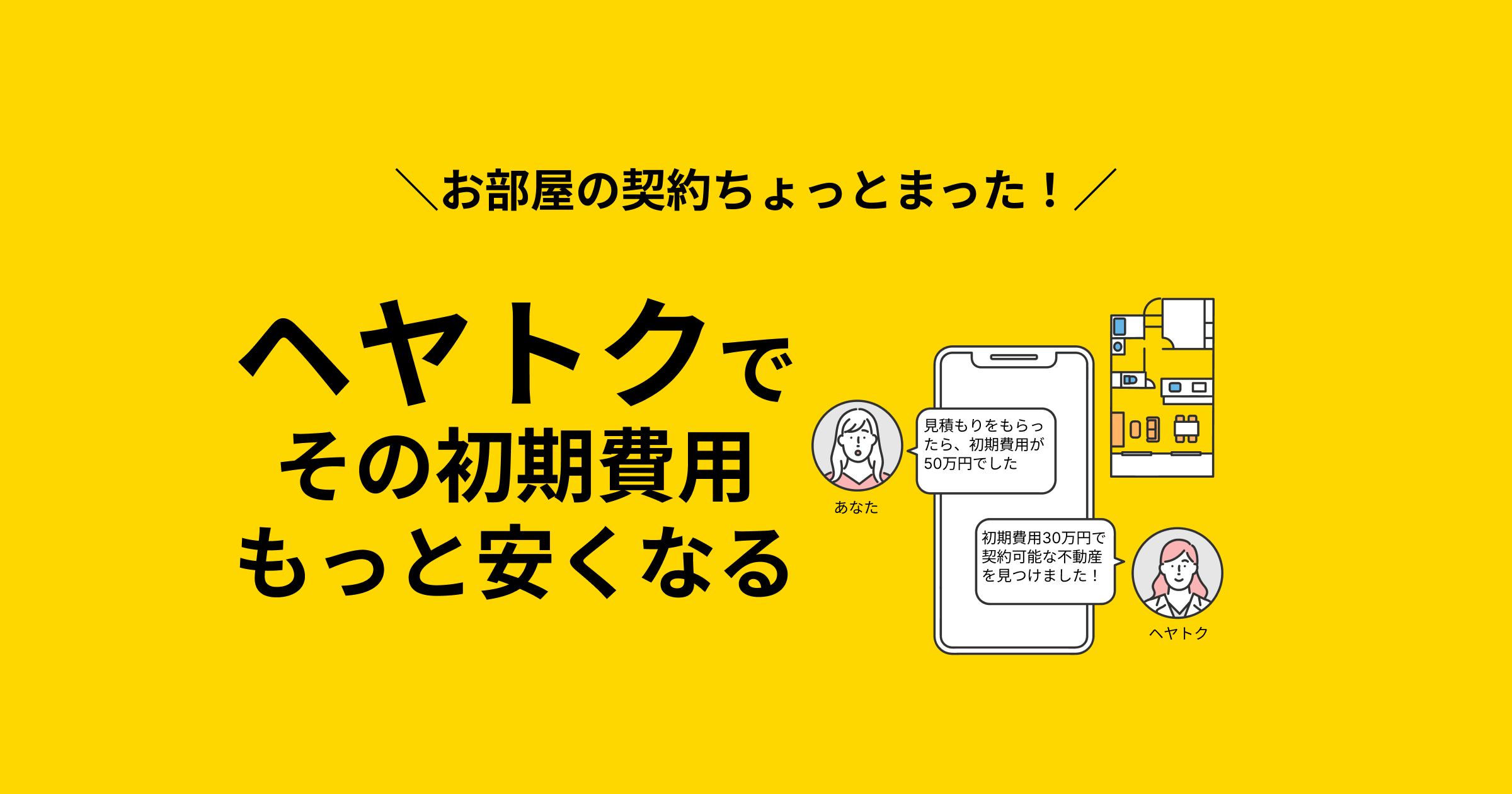 「ヘヤトク」は、住みたいお部屋を少しでも安い初期費用で契約できることで、ご利用になられる皆様のQOL向上を目指したサービスです。