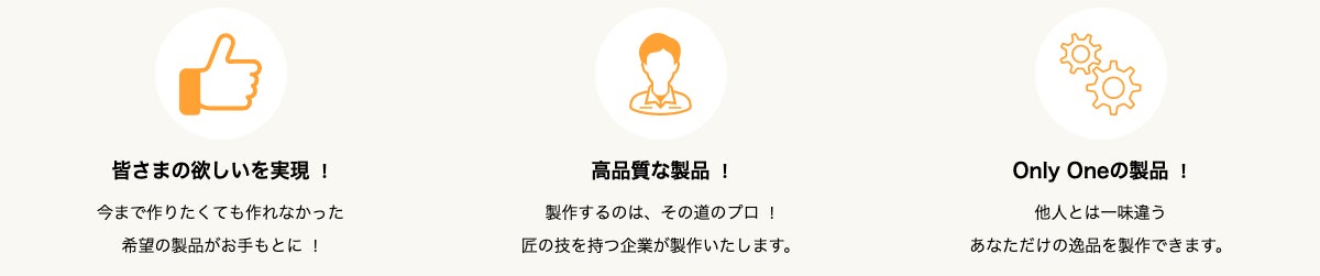 【特徴1】欲しいを実現!1点からでも製造依頼ができる!