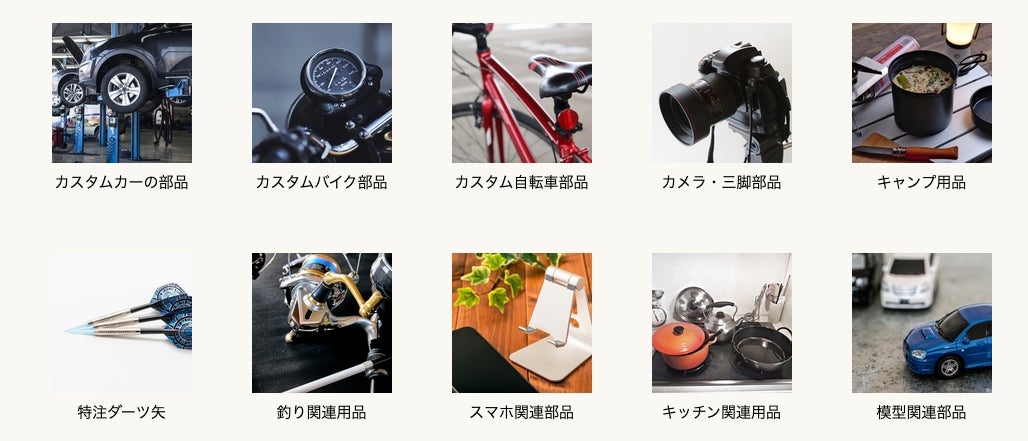 趣味や仕事で使う道具や部品をオーダーメイドで製造依頼し、自身の欲しいアイテムを作ってくれる企業を選ぶことができます。