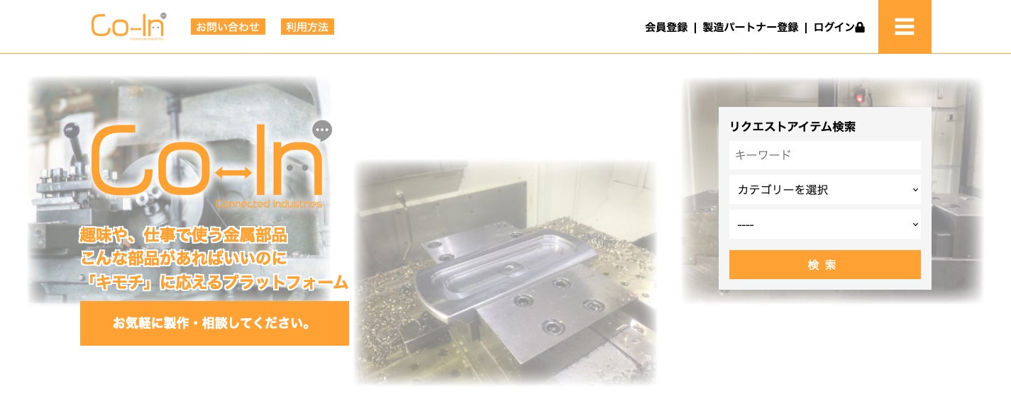 「Co-In」では、車やバイクのカスタムパーツから、ダーツの矢のそれぞれのパーツ(バレル・シャフト・チップ)やカメラと三脚を固定する小さなネジまで、趣味や仕事で使う製品のカスタム部品をオーダーすることができます。
