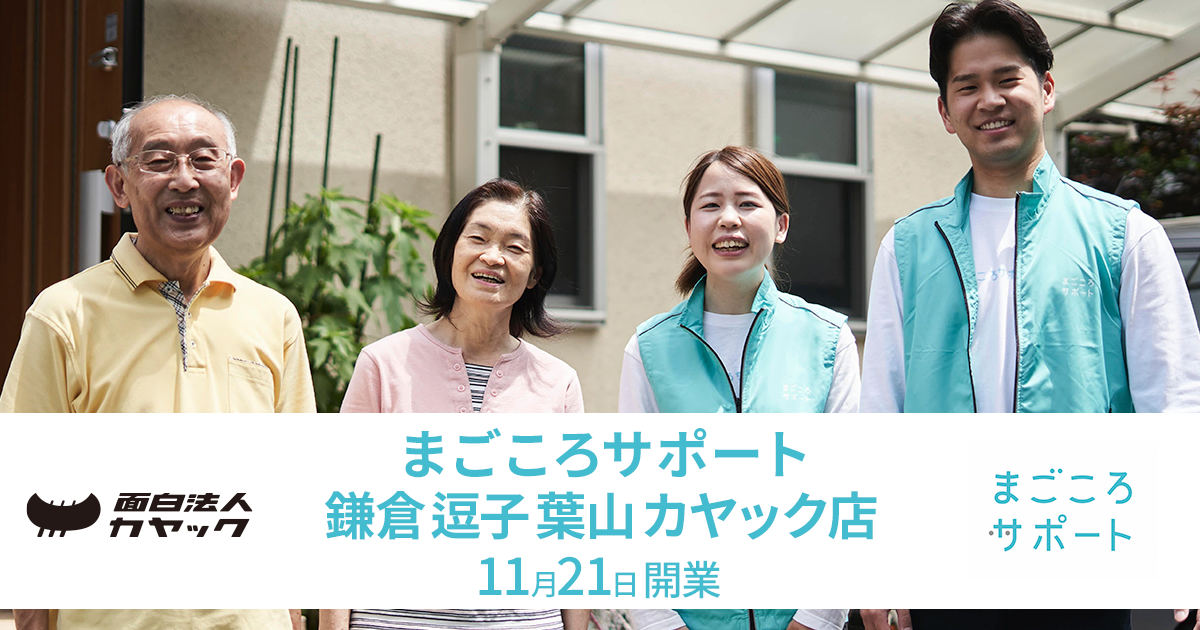 私たちは少しでも世の中に面白がる人を増やそうという思いを込めて「面白法人」を掲げています。面白がる方に年齢の制限はありません。高齢者の方々の割合が比較的高い鎌倉だからこそ、面白がっている高齢者の方々も増やしていきたい。それは人や文化の活性化に繋がり、地域の豊かさを実現していくものと考えます。「まごころサポート」で人がしあわせに心豊かに過ごせる地域の実現に貢献していきます!