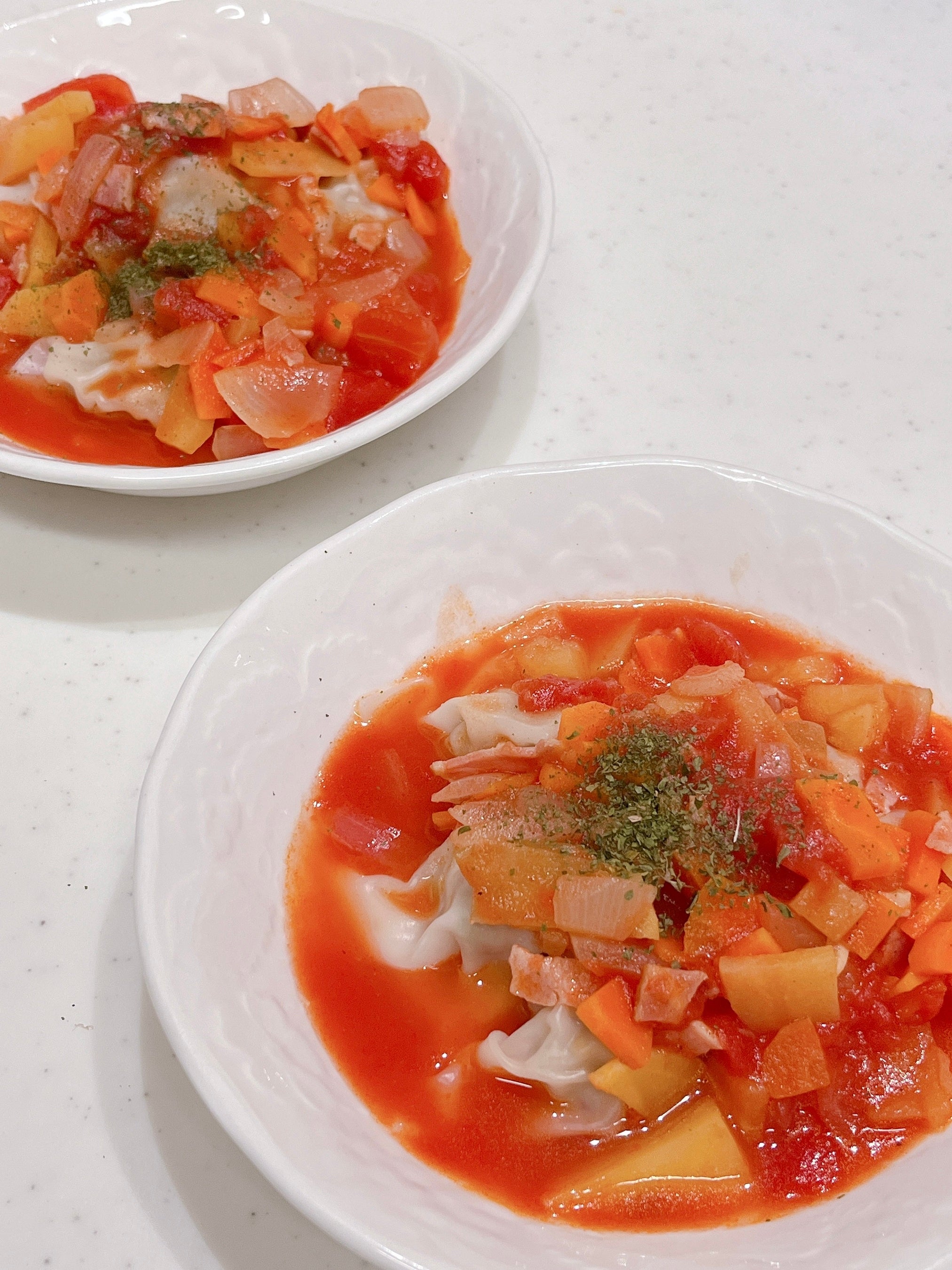 【カゴメ賞「簡単絶品!トマトスープ餃子!!」】