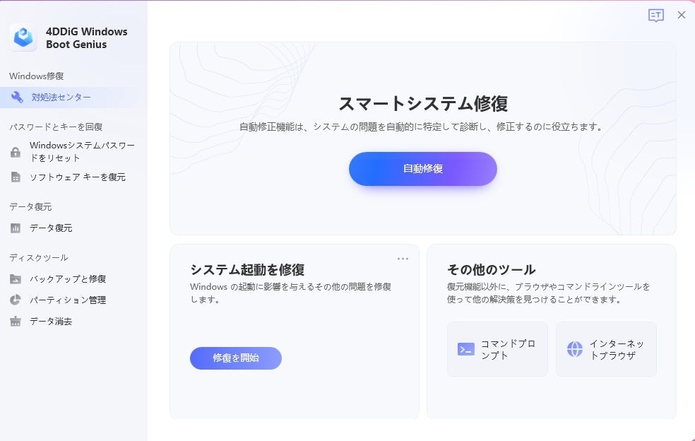 詳細ガイド: https://4ddig.tenorshare.com/jp/windows-boot-genius-guide.html
