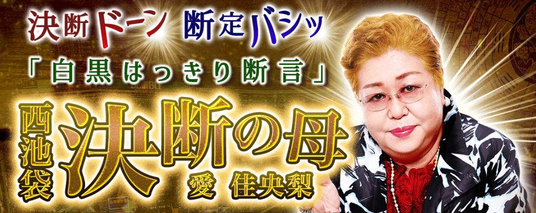 本サイトは、西池袋で人気の占い師『決断の母』愛佳央梨による最新鑑定です。愛佳央梨が易占い・四柱推命等の東洋占術の真髄を駆使して、どんな悩みや問題もズバッと断言・断定し、バシッと結論を言って決断を促します。
