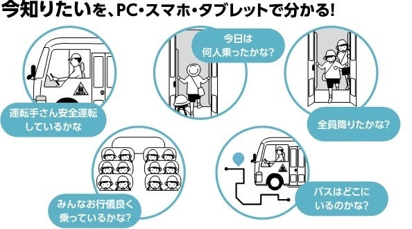 HKS 送迎バス安心見守り装置サービスHBAS-DR1 ROKUGA(仮名)は、弊社商品の360°通信型ドライレコーダーを、送迎バス向けにカスタマイズしたモデルで、ドアが開閉する度に、乗降状態を録画しクラウドに送信します。現時点や過去の乗降を、クラウド上で確認することができます。