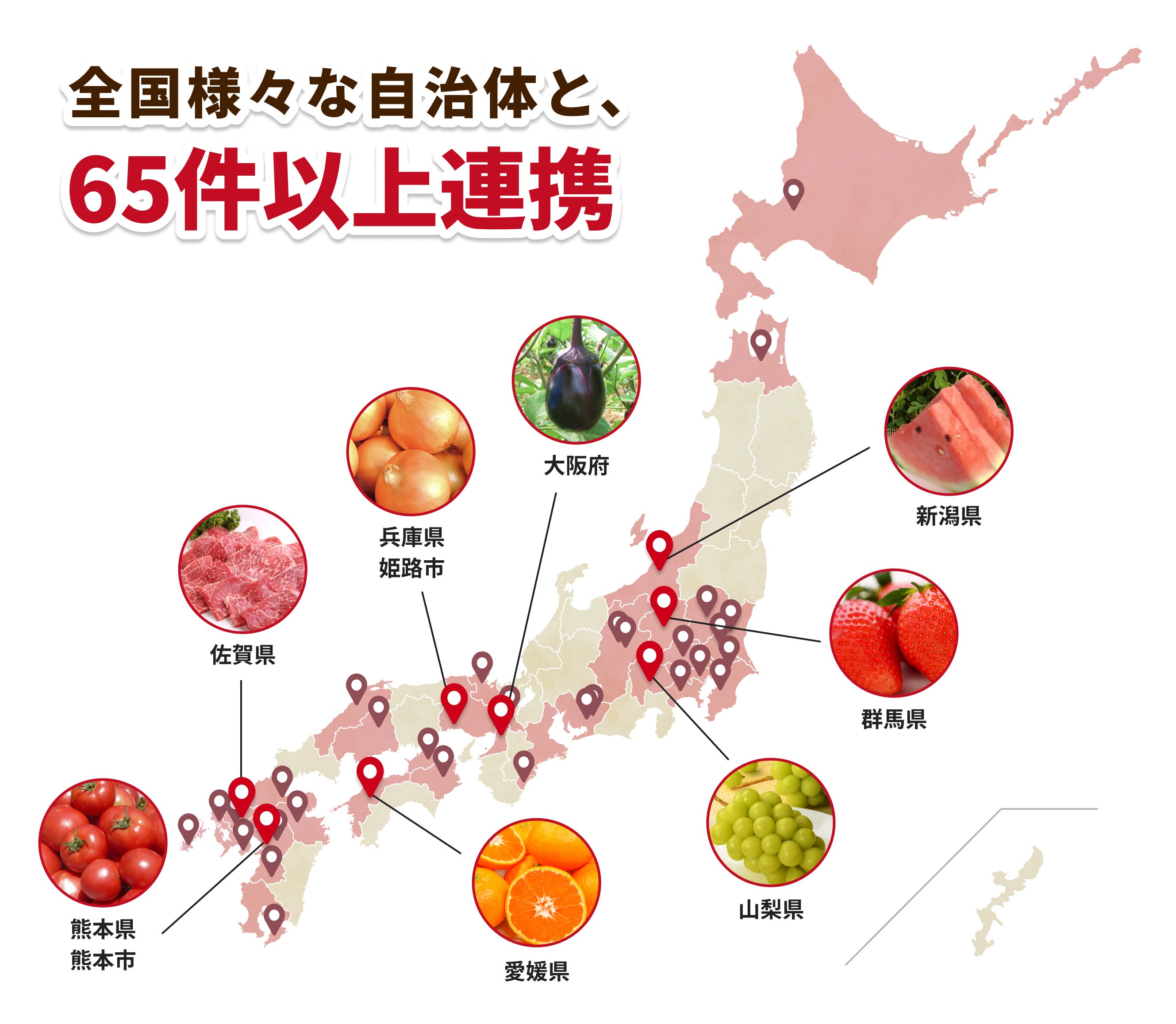 食べチョクは、生産者の販路拡大のサポートをすることを目的として、全国様々な自治体と65件以上の連携を行ってきました。